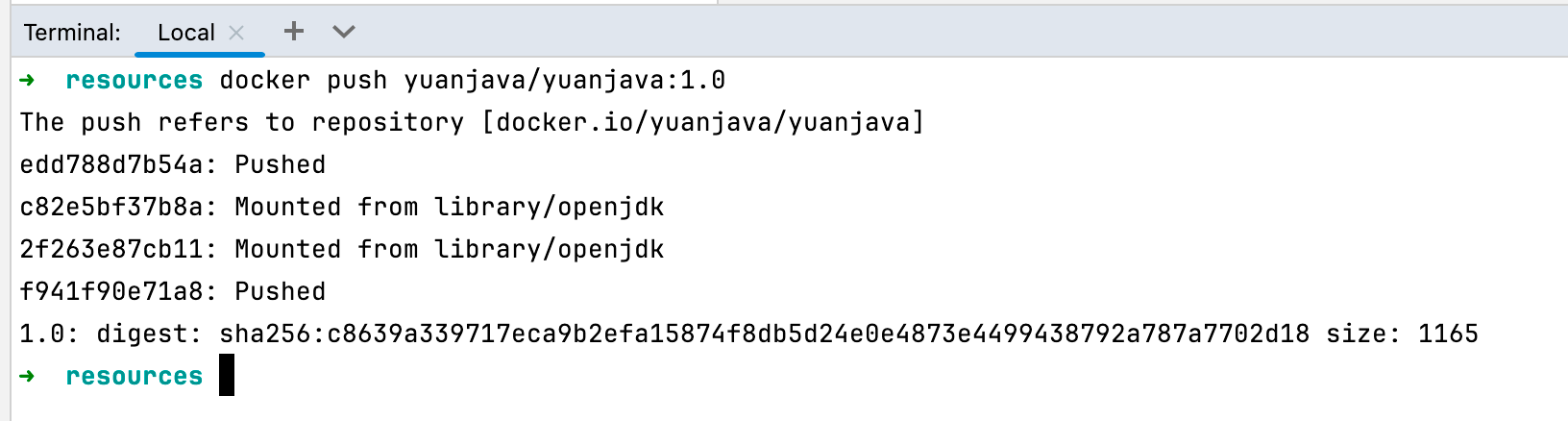 这一步是为了下面将 Docker镜像部署到 Kubernetes集群做准备,推送命令如下: