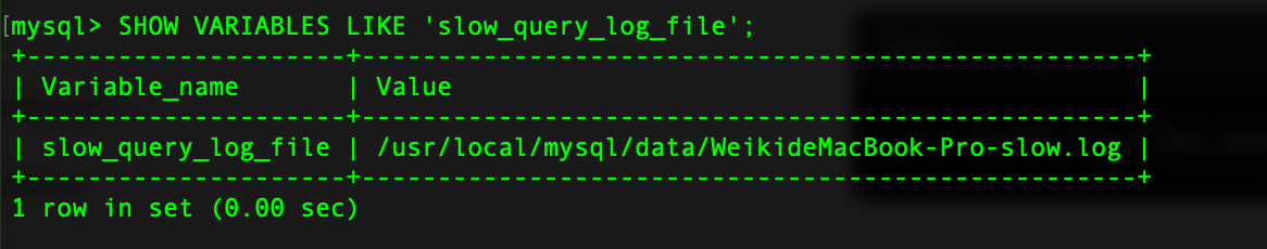 1 | SHOW VARIABLES LIKE 'slow_query_log_file'; |